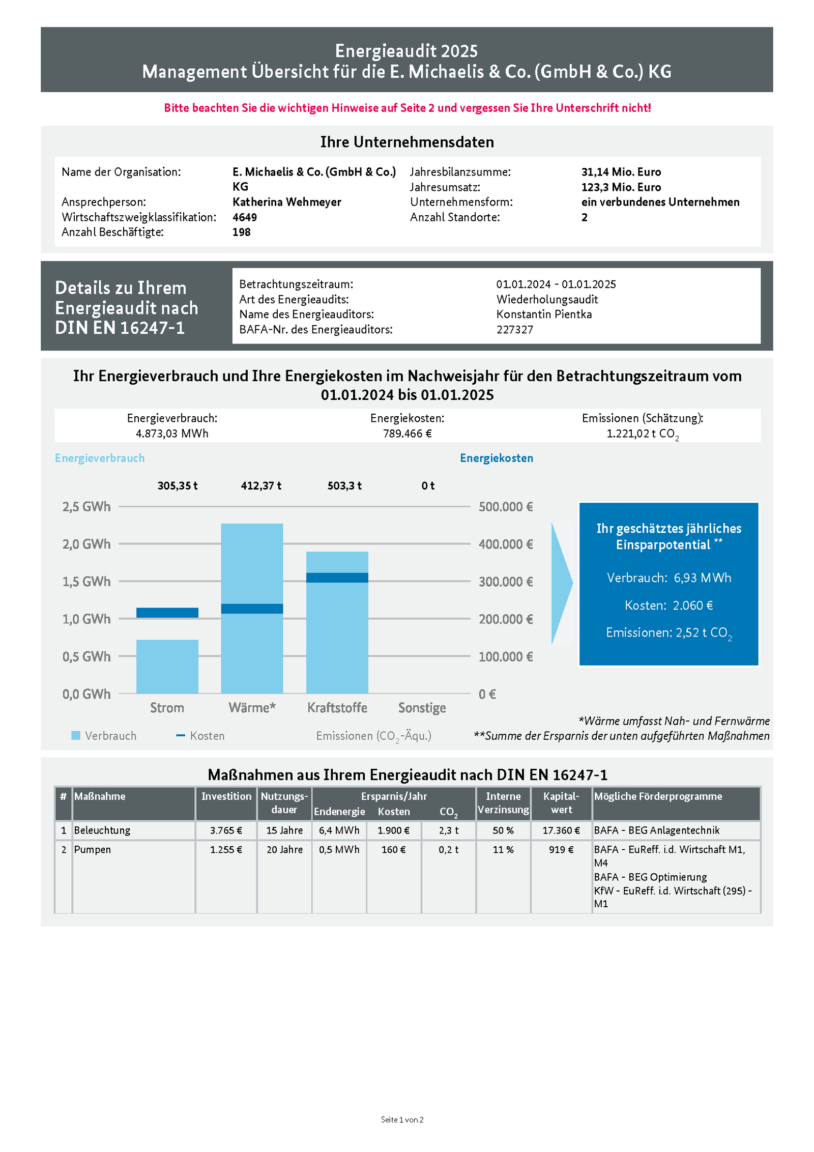 Ziel des Audits ist es, Einsparpotenziale zu identifizieren und den Energieeinsatz nachhaltig zu optimieren.
